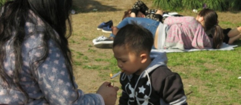 Uma mãe foi vista acendendo um cigarro para seu filho em um parque considerado familiar, em Xangai, na China, neste domingo (31). A informação foi publicada pela jornalista de moda Shangai Style File em seu blog nesta terça-feira (2).